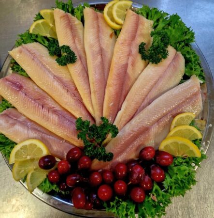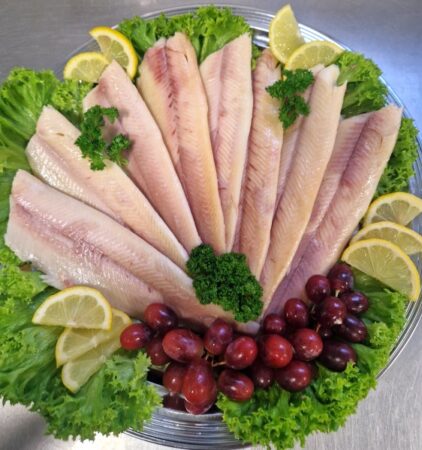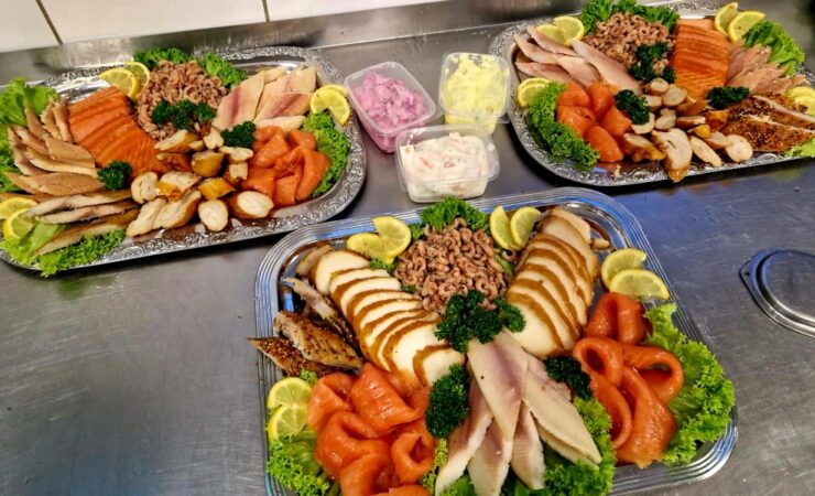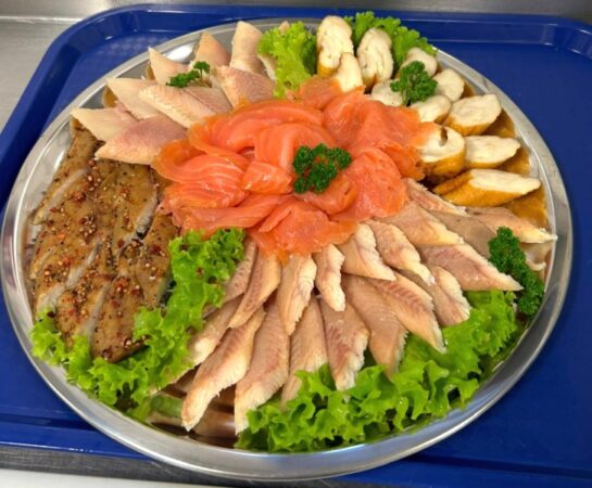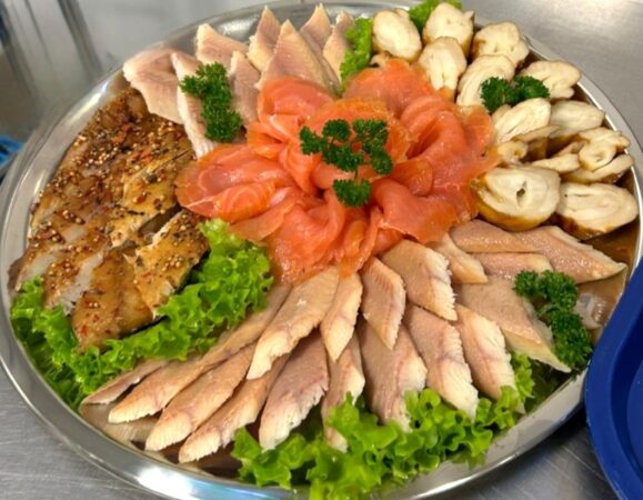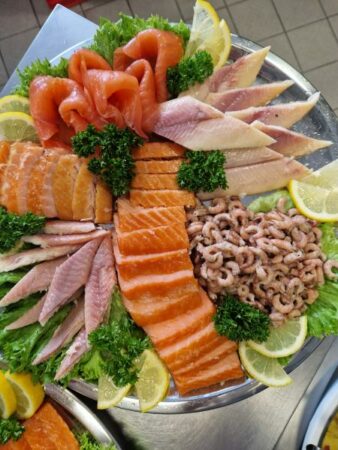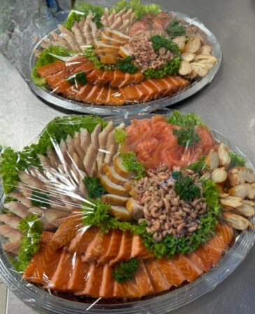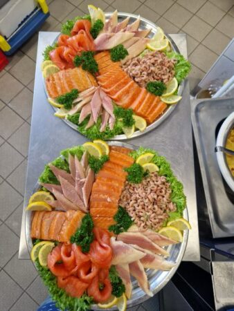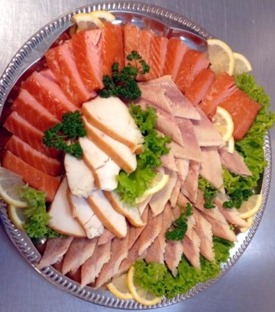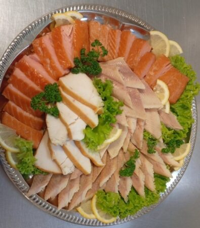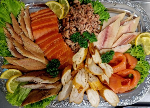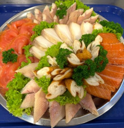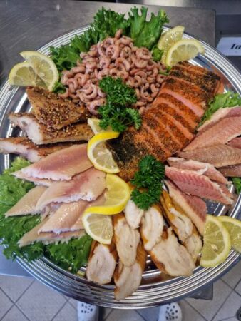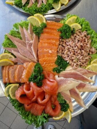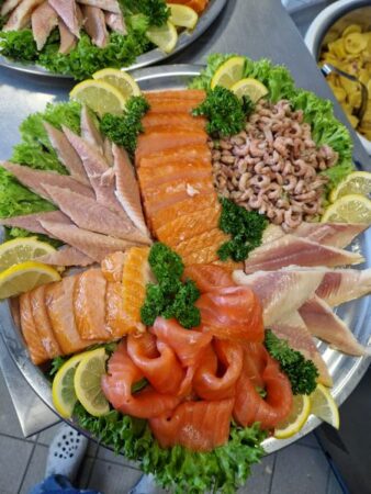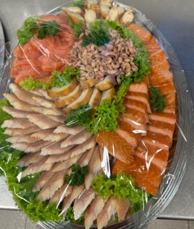 Unsere Fischplatten enthalten einen Querschnitt durch das breite Angebot an Räucherfisch, ganz nach Ihren Vorstellungen – z.B. Markrelenfilet, Forellenfilet, Buttermakrele, Stremelachs, Räucherlachs, Heilbutt, Schillerlocken und Aal. Gerne fügen wir leckere Krabbengerichte hinzu.